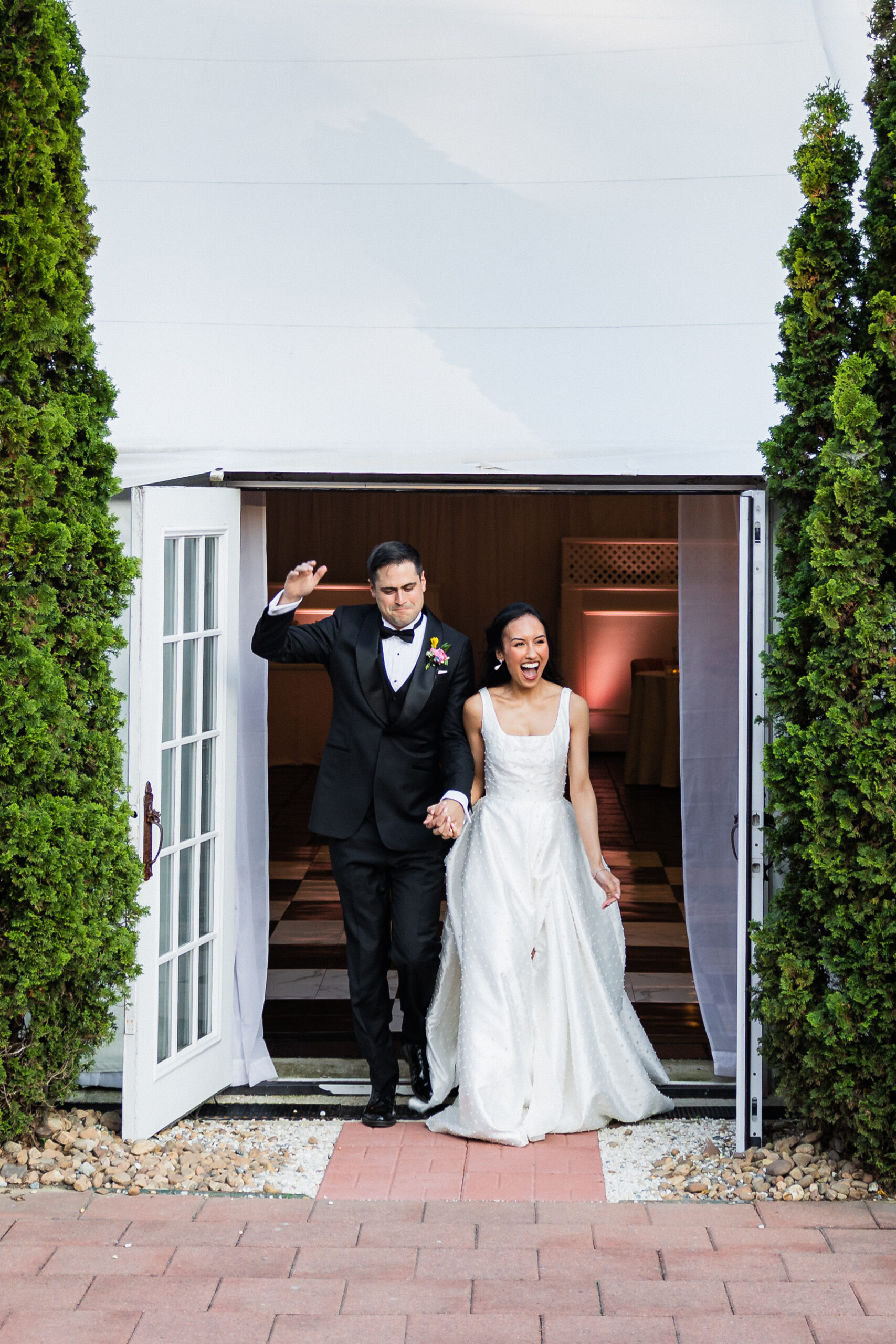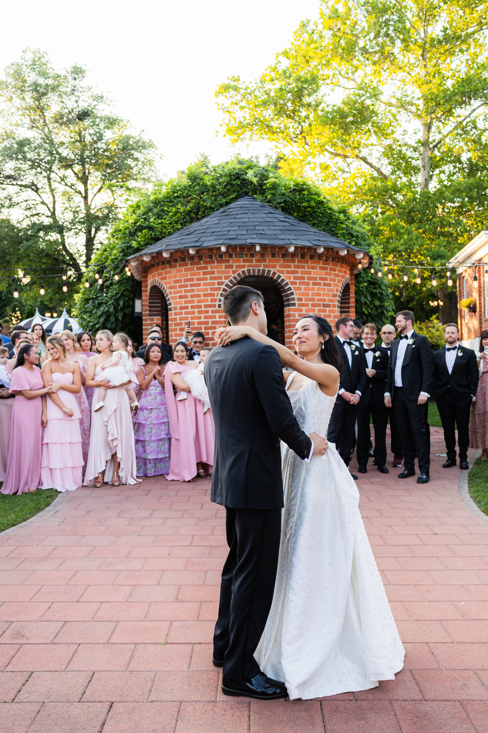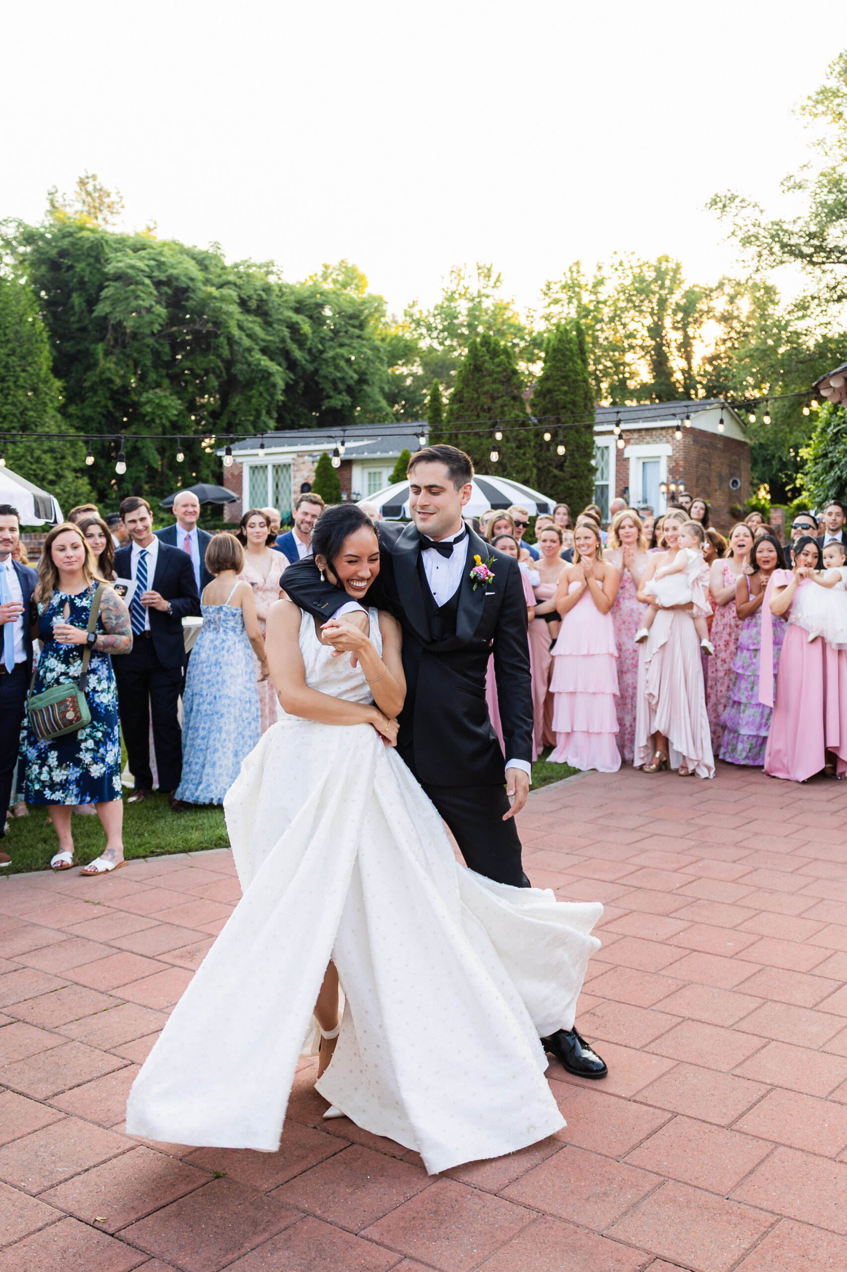 During cocktail hour, guests can get a drink from the pergola bar and enjoy being outside amidst a picturesque background. Couples can make their grand entrance and have their first dance on the patio while being surrounded by their guests. There is nothing quite like it!