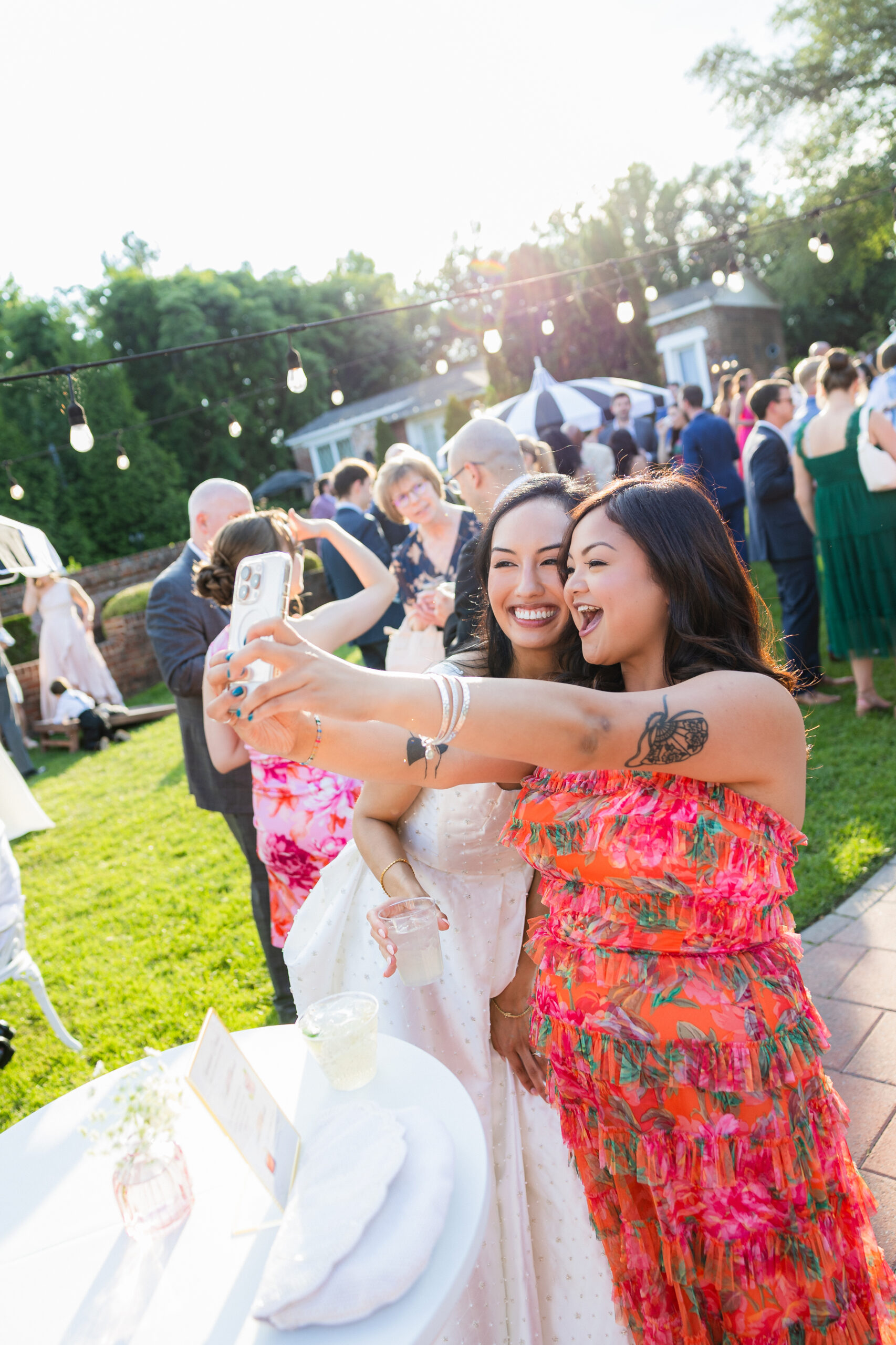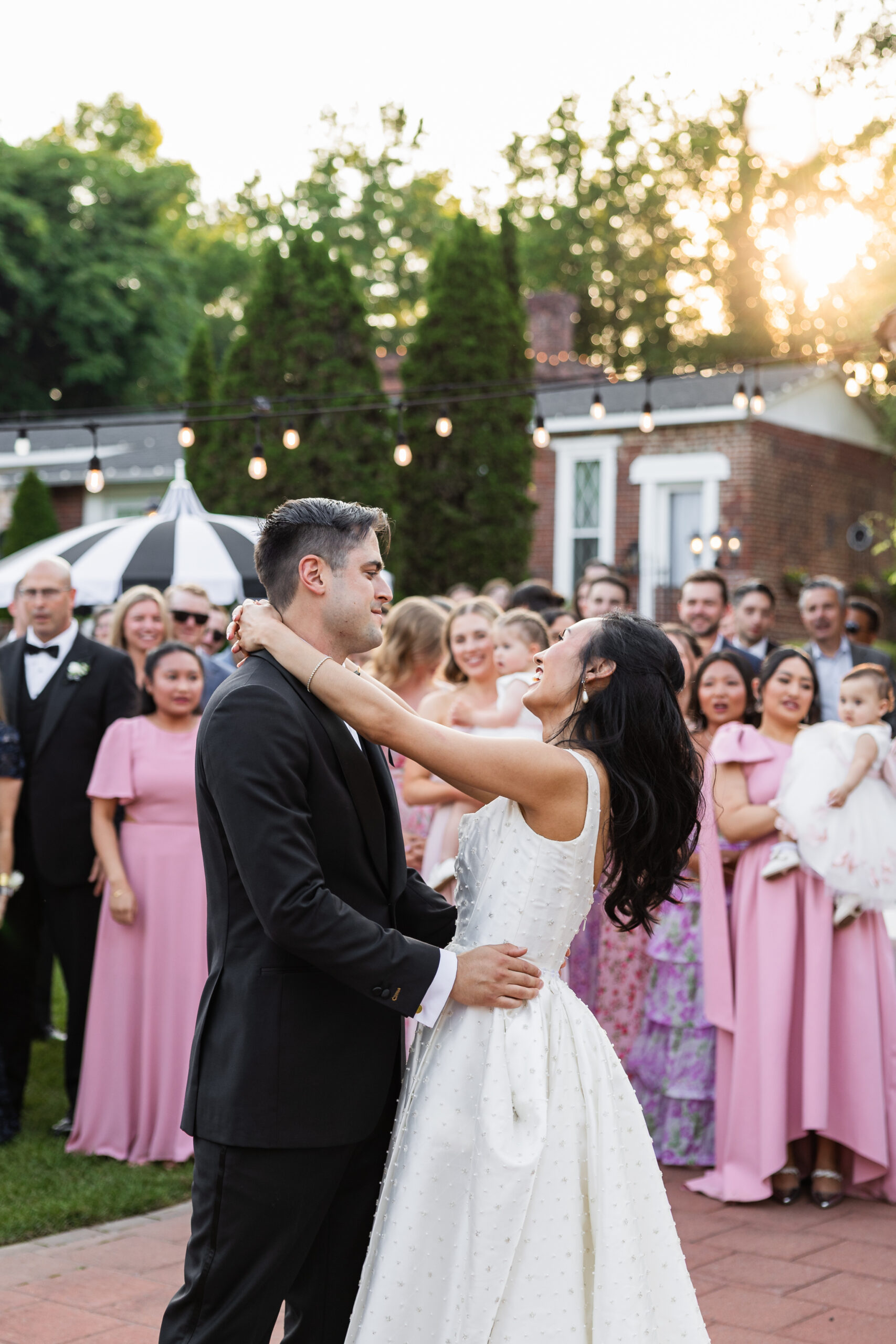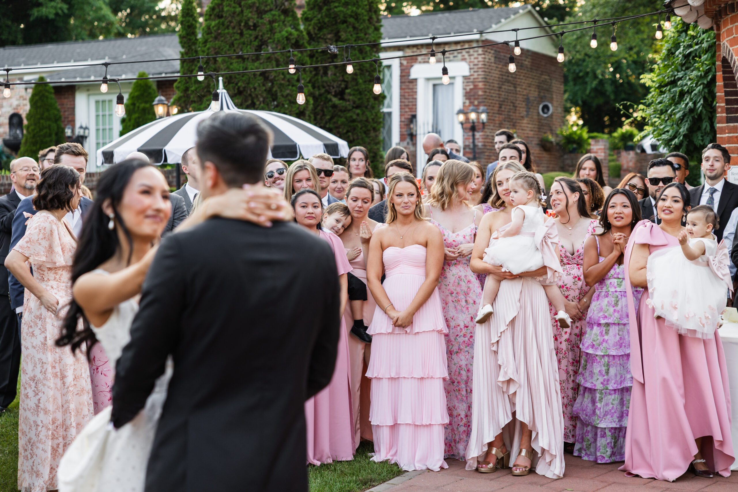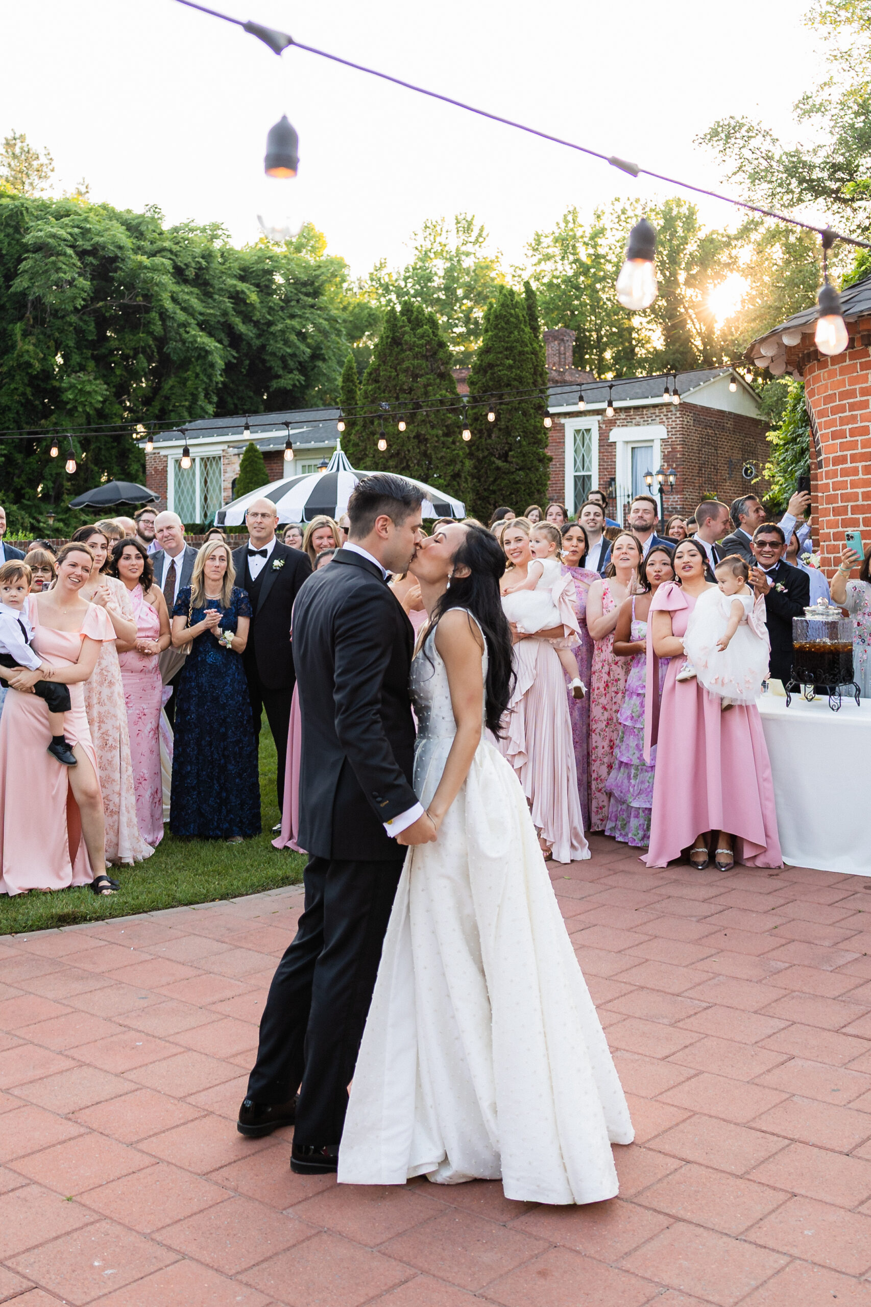 During cocktail hour, guests can get a drink from the pergola bar and enjoy being outside amidst a picturesque background. Couples can make their grand entrance and have their first dance on the patio while being surrounded by their guests. There is nothing quite like it!