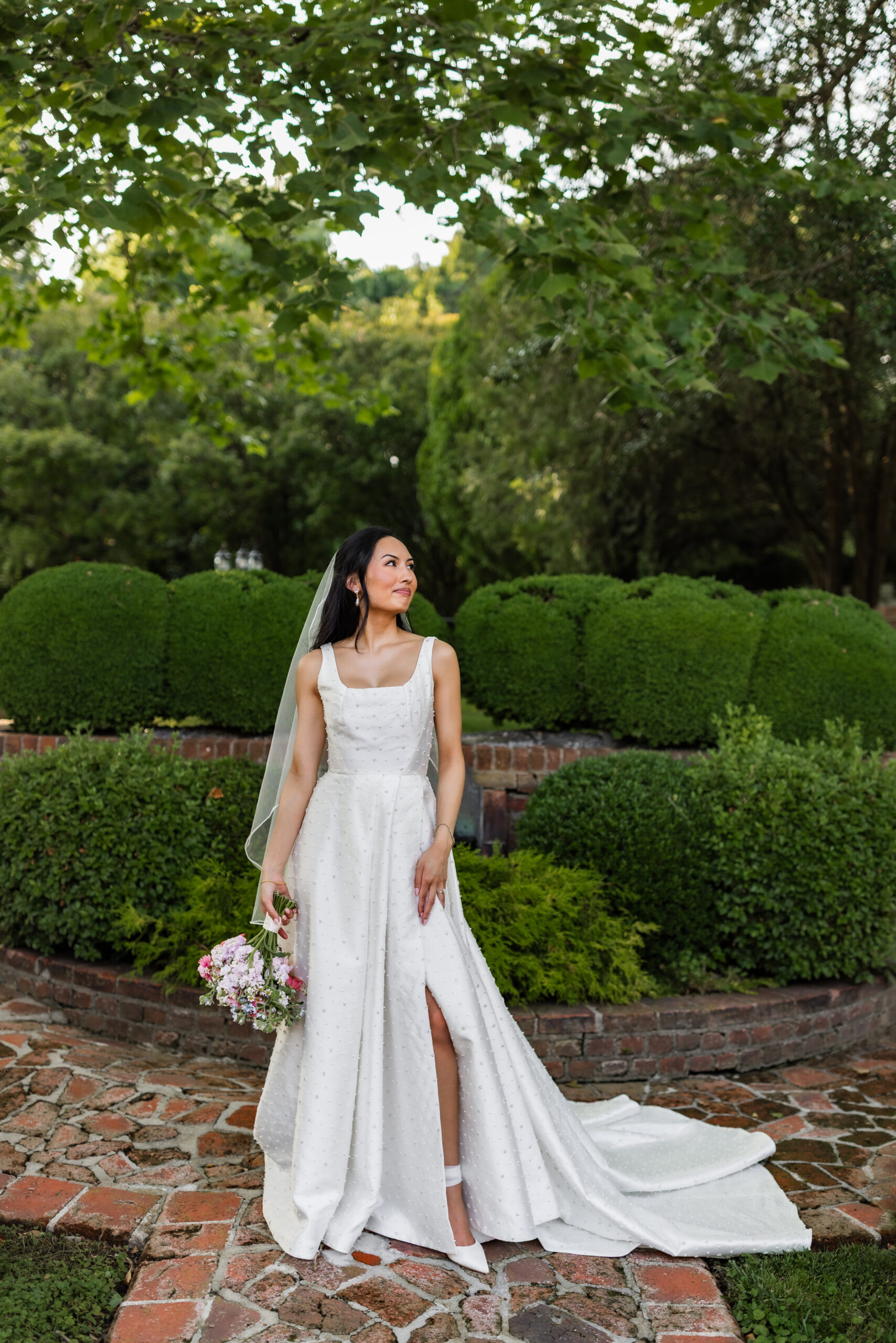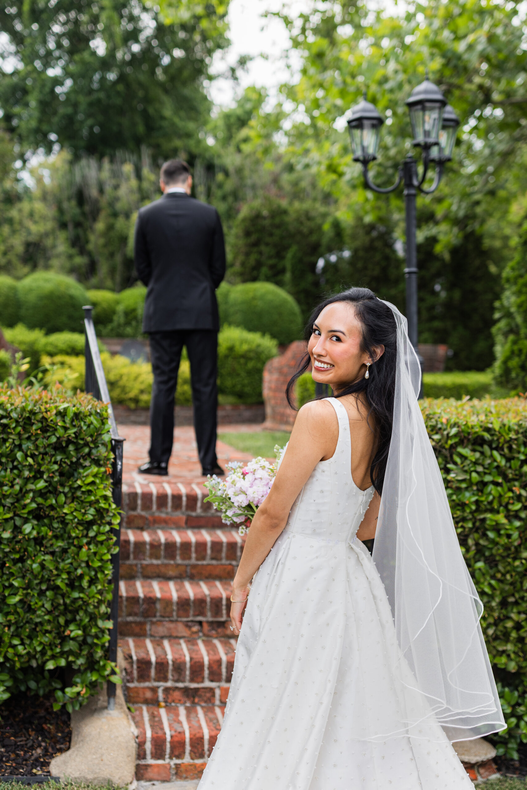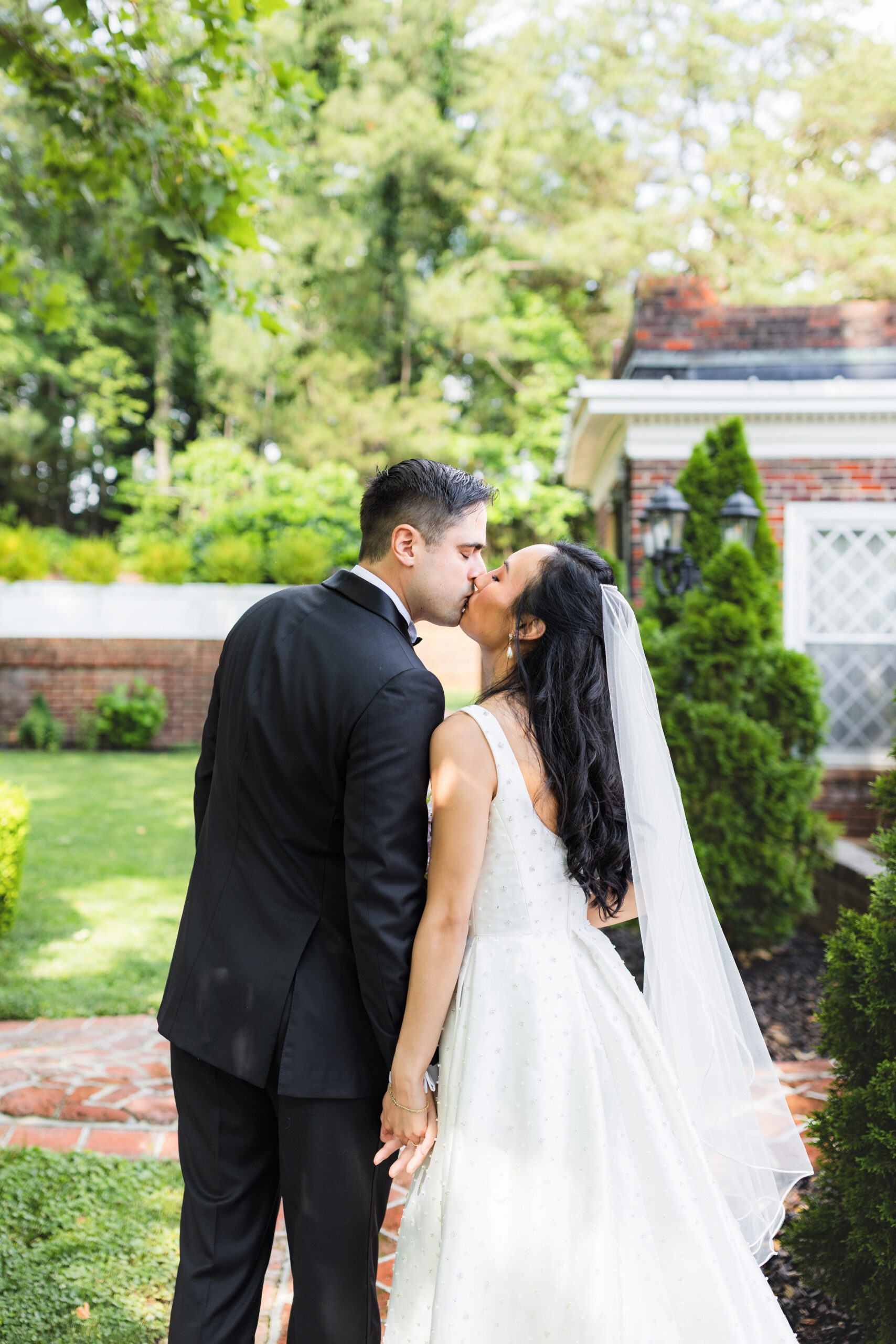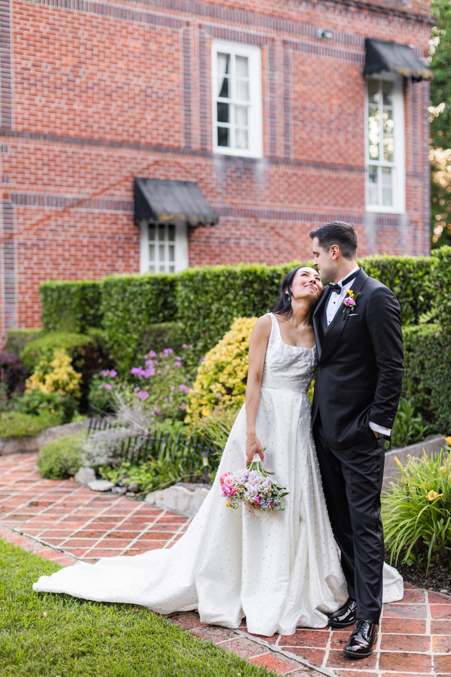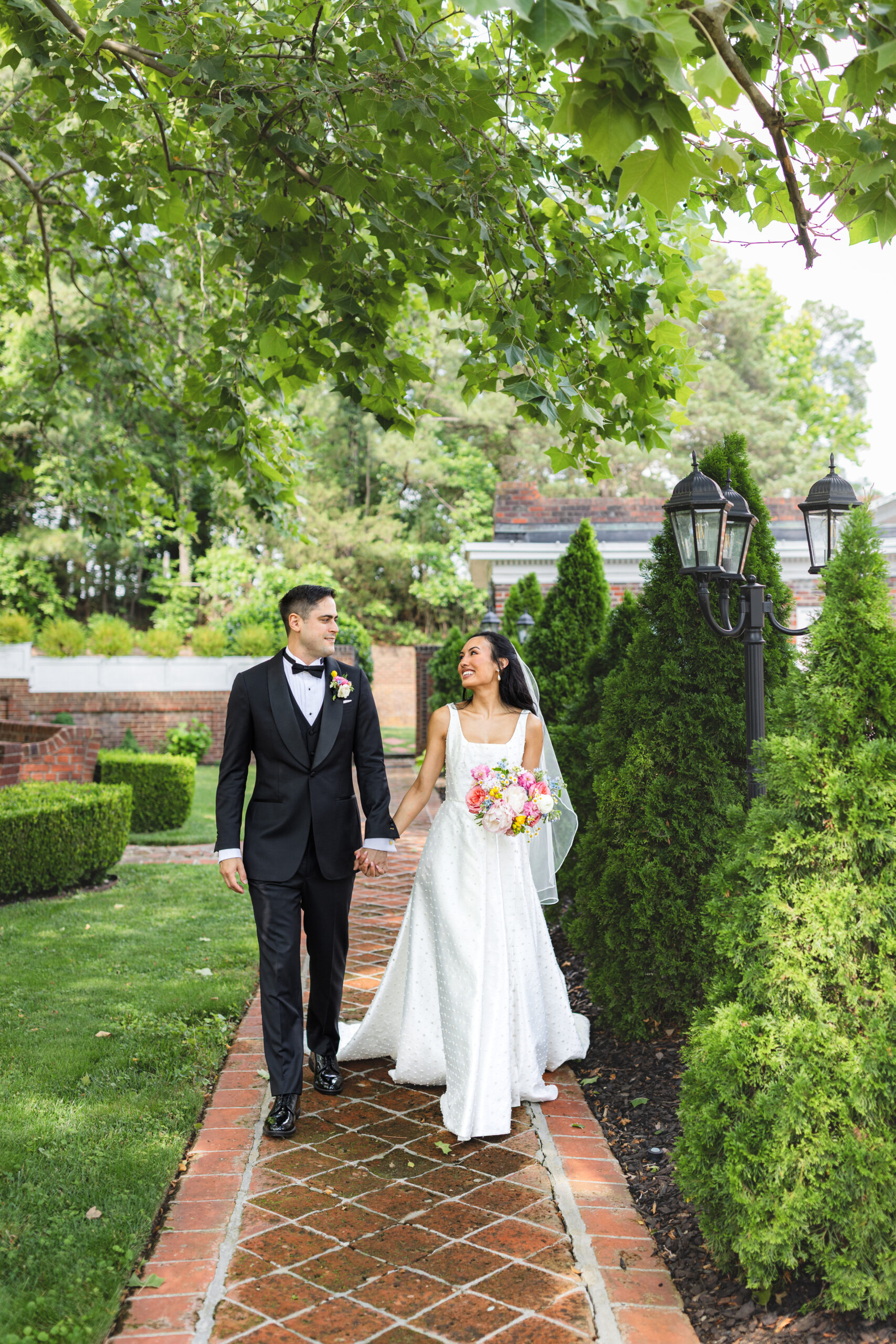 Mankin Mansion has so many spaces and unique opportunities for photos. I could spend hours taking couple portraits here because there are just too many beautiful spots! We were able to cover a lot of ground during K + J’s couple portrait time. We took some photos in the Mansion, maze, along the brick pathways, and on the lawn in front of the Mansion (one of my favorite spots).
